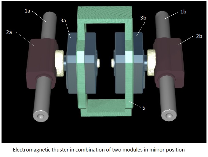 The new electromagnetic propulsion system, as described, appears to be an innovative approach to generating thrust without relying on external interactions or a "resting background help." Here's a breakdown of its components and how it's designed to function: