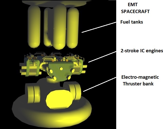 These engines are lightweight and generate high power by utilizing oscillating shafts. Instead of delivering output in rotations, oscillator engines produce oscillations that are then converted into electricity. They operate in pairs as an alternative method to prevent excessive heat buildup during navigation in outer space, where cooling through circulation is not feasible. This design approach will help reduce the weight and size of the spacecraft, ultimately lowering costs. Additionally, the components will not be discarded into space or the atmosphere; rather, they will be reusable for future missions.